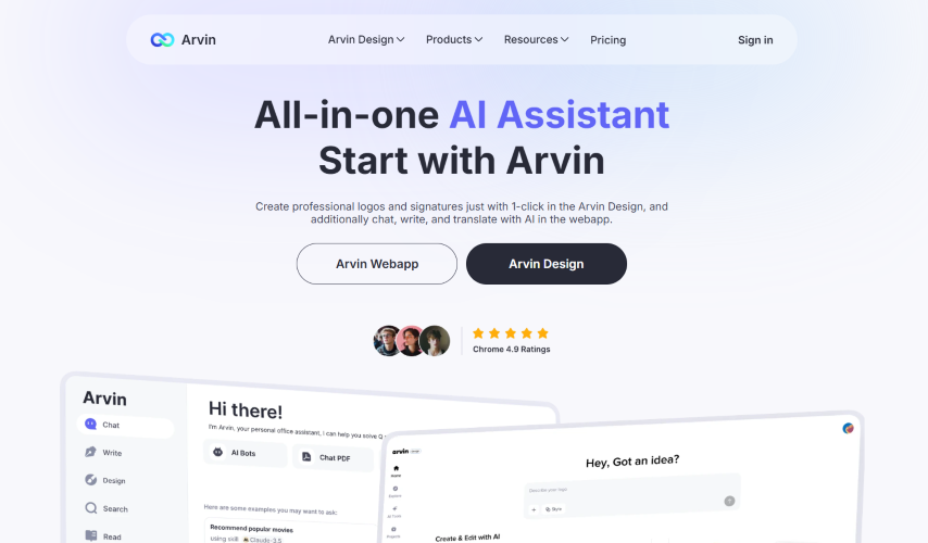 在功能方面,Arvin 不僅能作為智能聊天機器人提供深度問答和自然語言互動,還包括多種實用工具,例如 文章、電子郵件、社交媒體內容自動生成與編輯、PDF 網頁及 YouTube 影片摘要、多語言翻譯與文字改善,甚至有 AI 影像生成、背景移除、Logo 或設計元素創建工具。它通常作為瀏覽器擴充套件安裝,透過快捷鍵或按鈕即可在任意網站快速啟動智能對話。