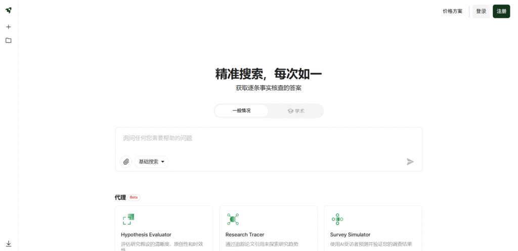 Liner 也有「Scholar 模式」(只選可信/學術來源)、「Deep Research」與多種 AI agent 工具(像是 Hypothesis Generator、Citation Recommender、Literature Review 等)可以協助你從學術或研究角度深挖主題。